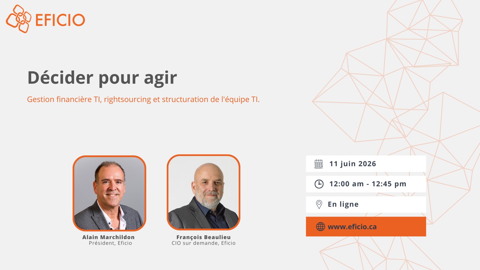 Ce webinaire s’adresse aux CIO, dirigeants TI, directeurs financiers et leaders d’affaires qui doivent prendre des décisions éclairées sur les budgets TI, le modèle de sourcing et la structure de l’équipe pour soutenir durablement les priorités de l’organisation.